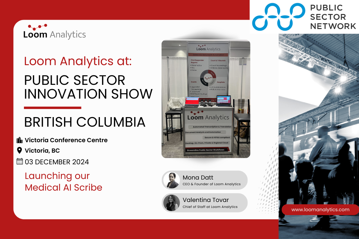 Loom Analytics was proud to participate in the Government Innovation BC 2024, an event dedicated to showcasing the latest advancements in public sector technology. With a focus on empowering government leaders with cutting-edge solutions, the event brought together top innovators to discuss pressing challenges and explore practical strategies for improving citizen services.